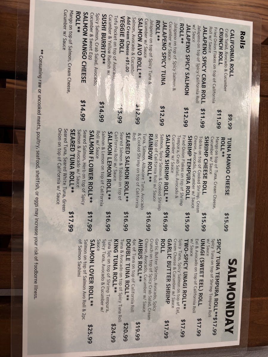 SALMONDAY Menu